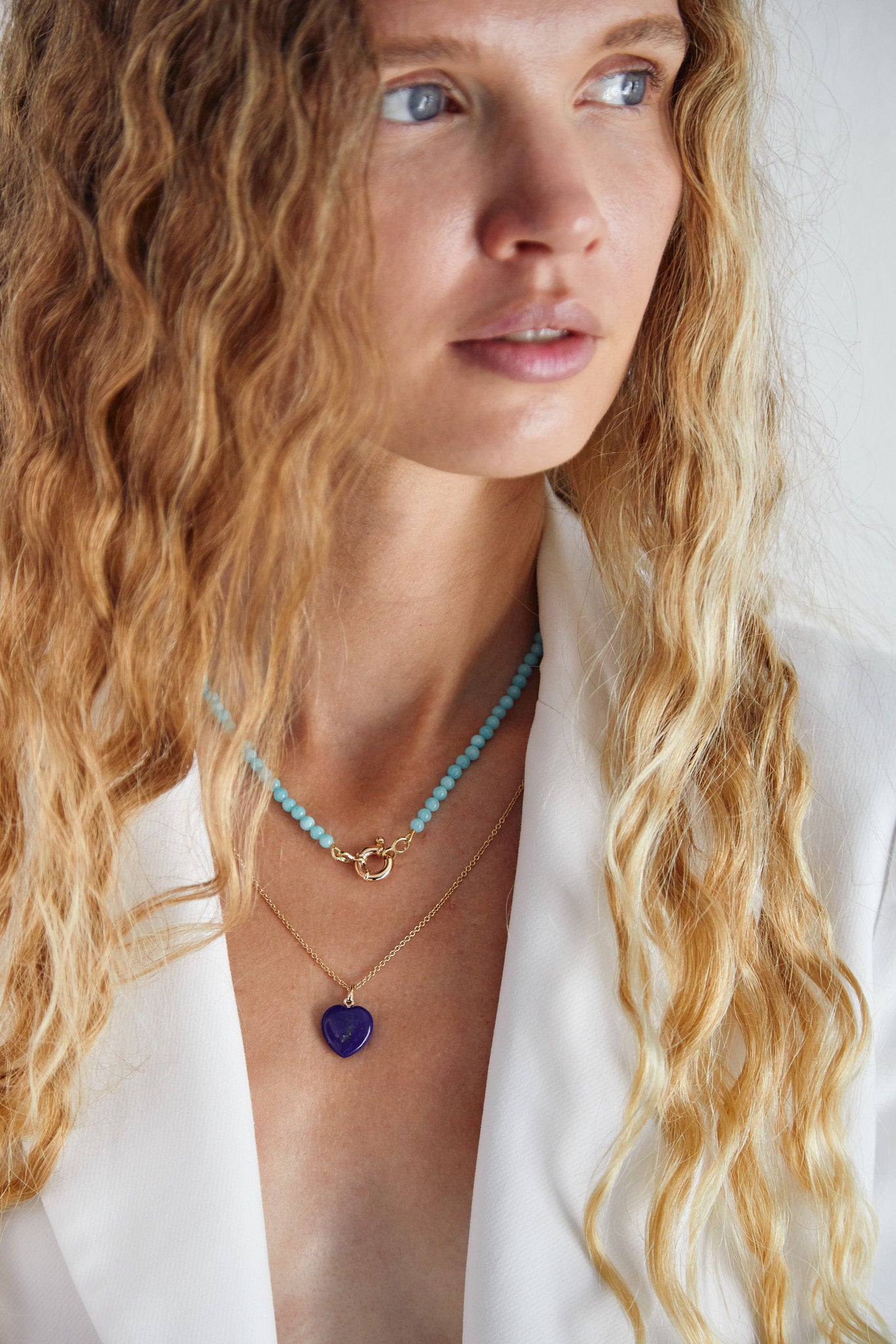 Lapis lazuli and amazonite gemstone bracelets and necklaces that capture the calm of coastal escapes and the boldness of sunlit afternoons. Designed to play, layer, and bring joy to every day.