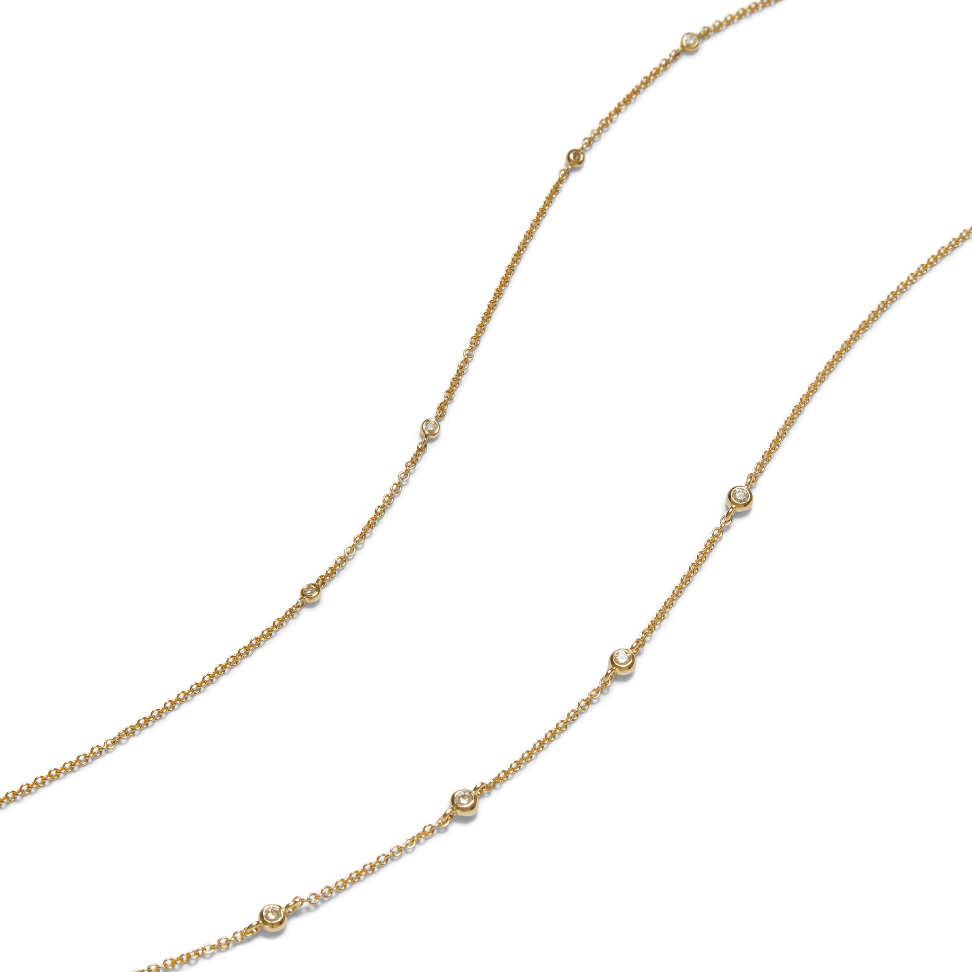 While being eye-catching and beautiful alone, the diamond-by-the-yard necklace layers effortlessly with other jewels